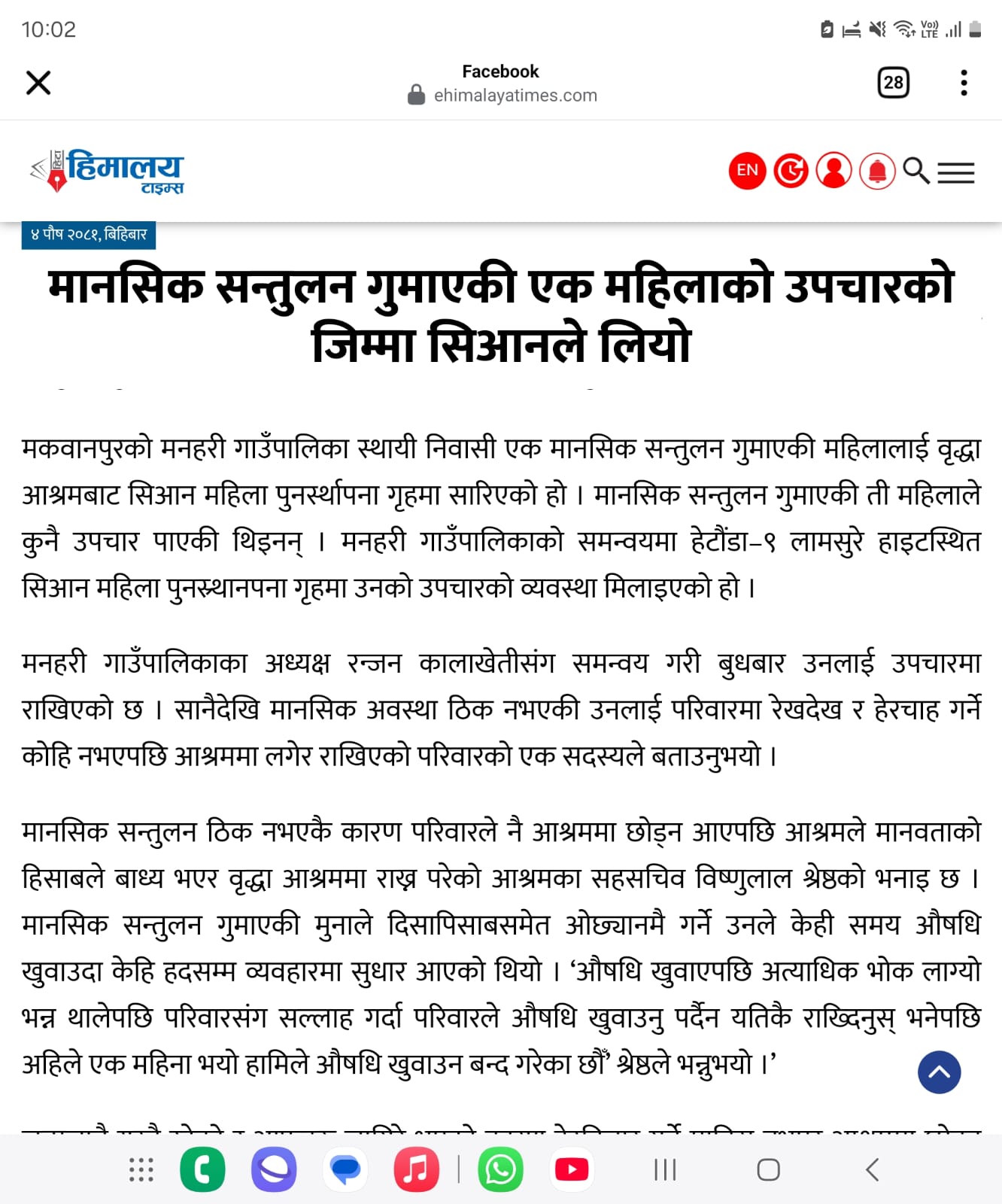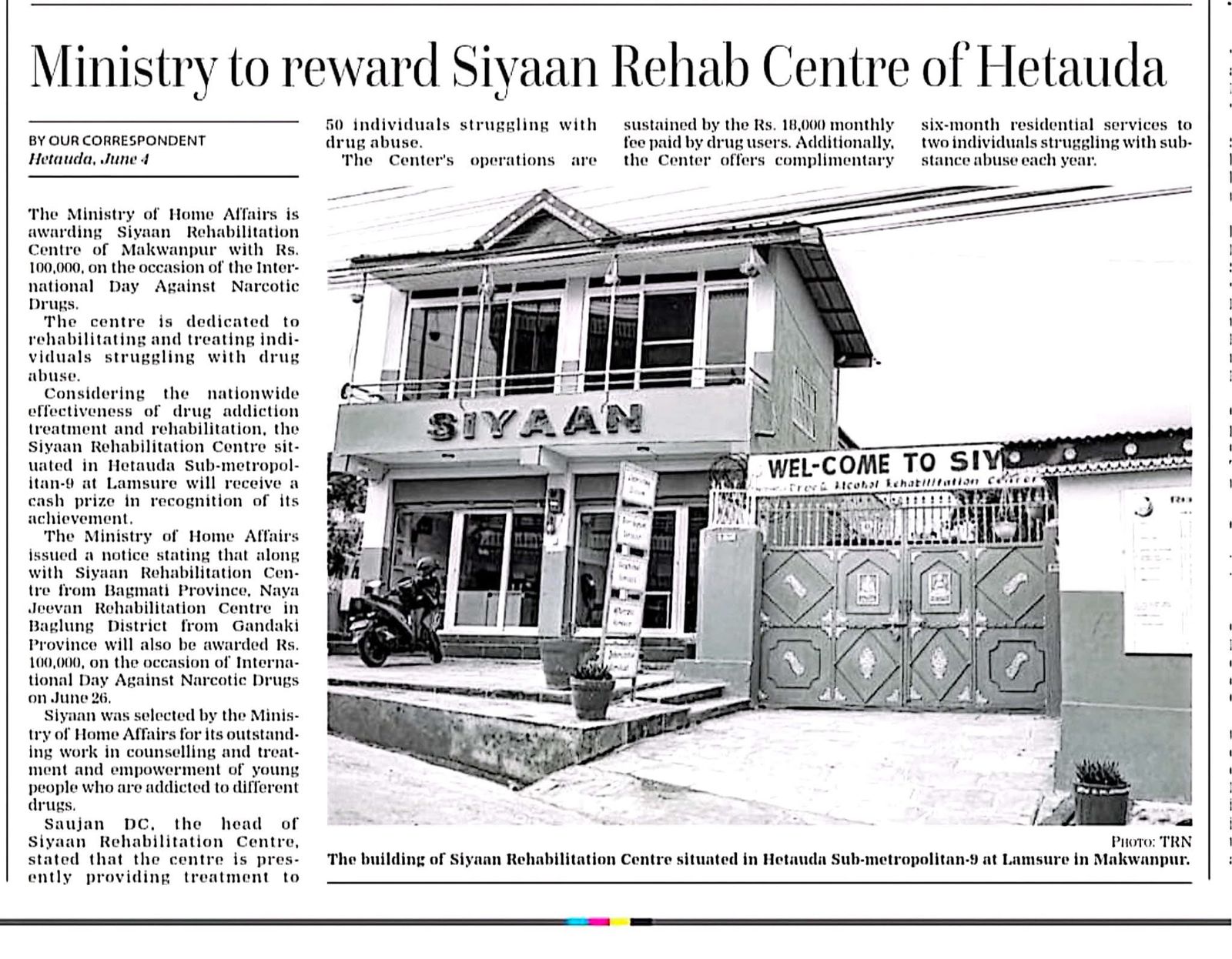 Awarded as a best rehabilitation center in fiscal year 2080/2081
